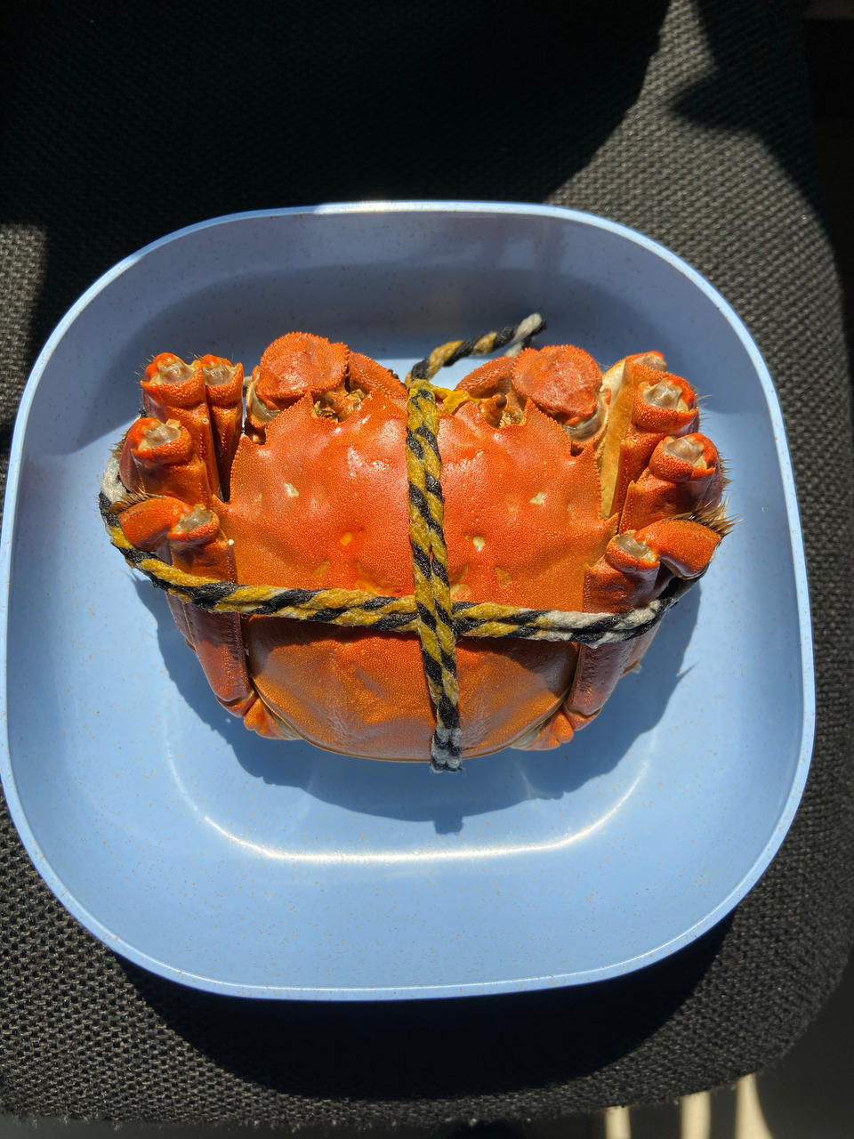 美女同事带来大闸蟹,请大家吃,她还挑了一个大个给我😘😘😘