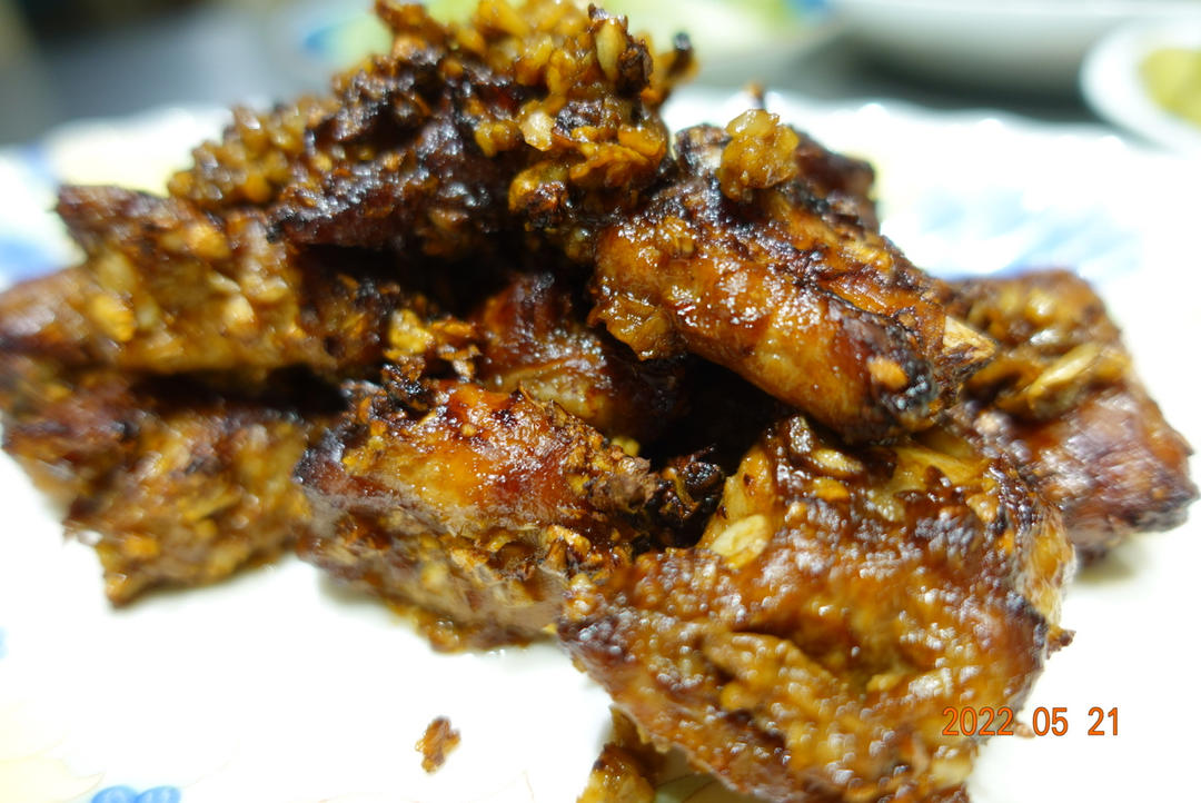 没能被油泡着的蒜泥,有些焦了。