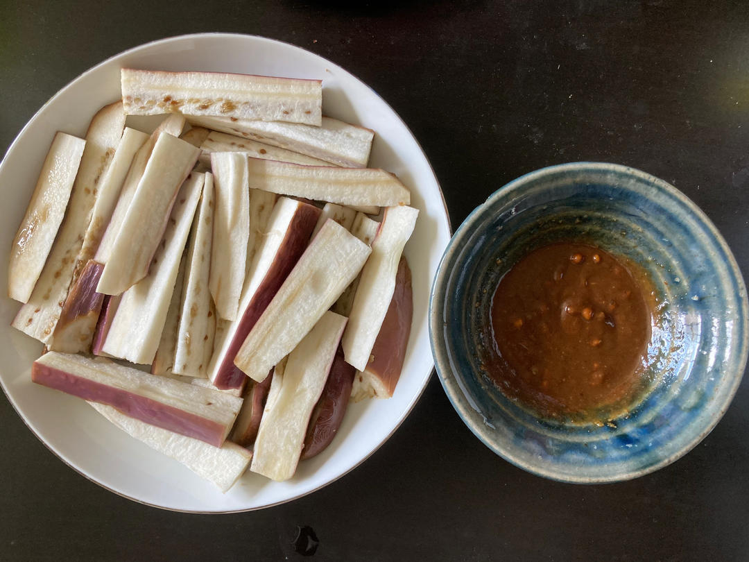 蒸茄子条蘸沙茶花生酱蘸酱~