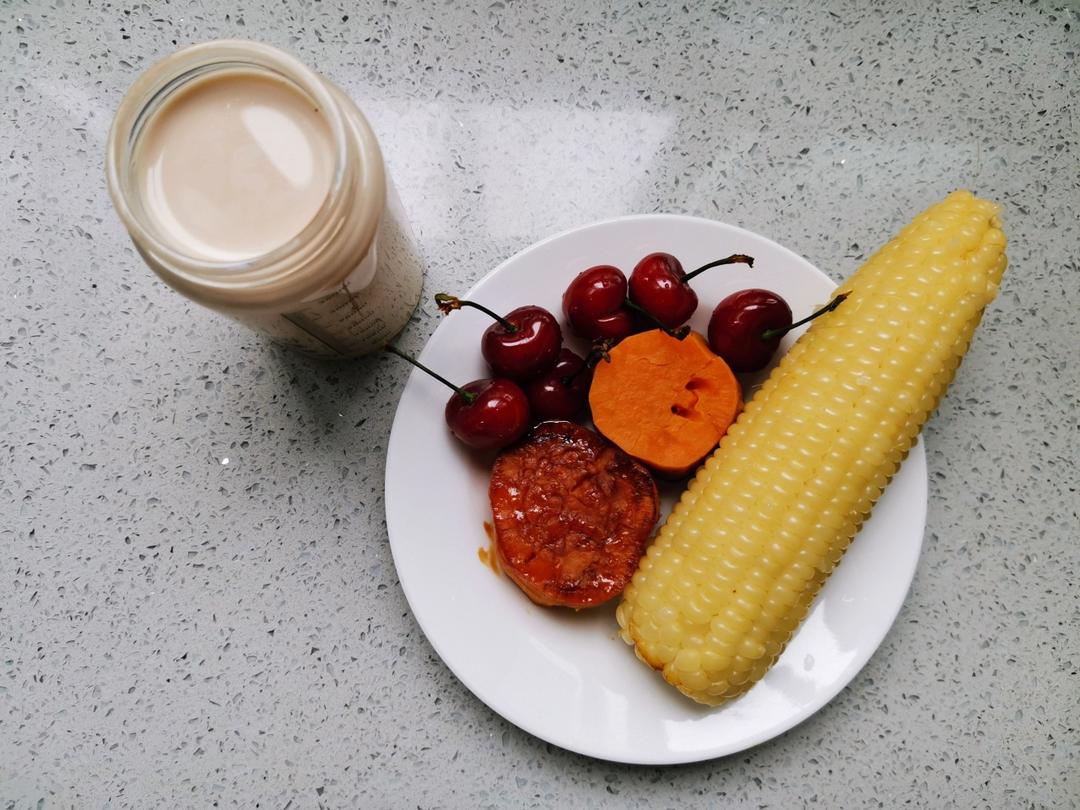 玉米芝士+西蓝花+小番茄+蓝莓+水煮蛋