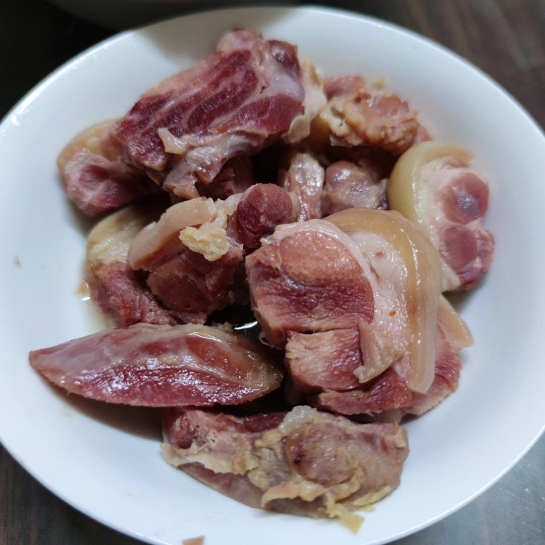 厨房的烤猪肘,不烤直接水煮,得到一盆咸淡适中,皮嫩肉软的盐水猪肘,味道不错。