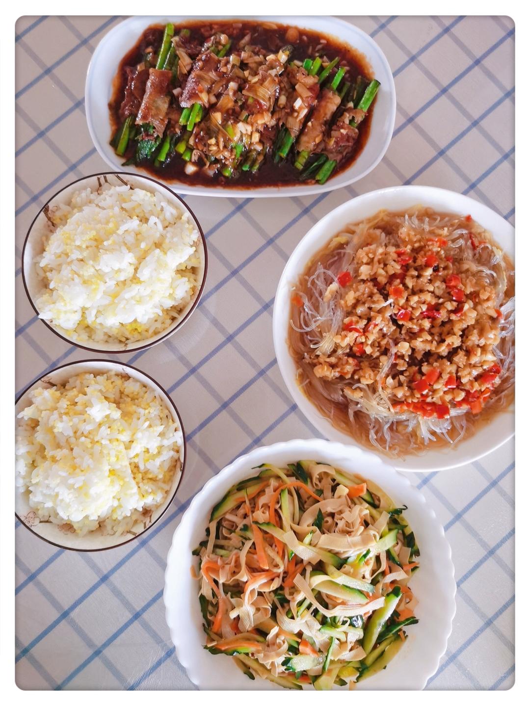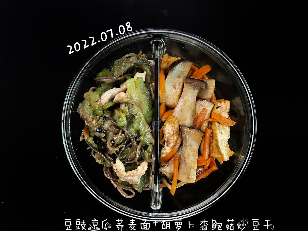 豆豉凉瓜荞麦面+胡萝卜杏鲍菇炒豆干
