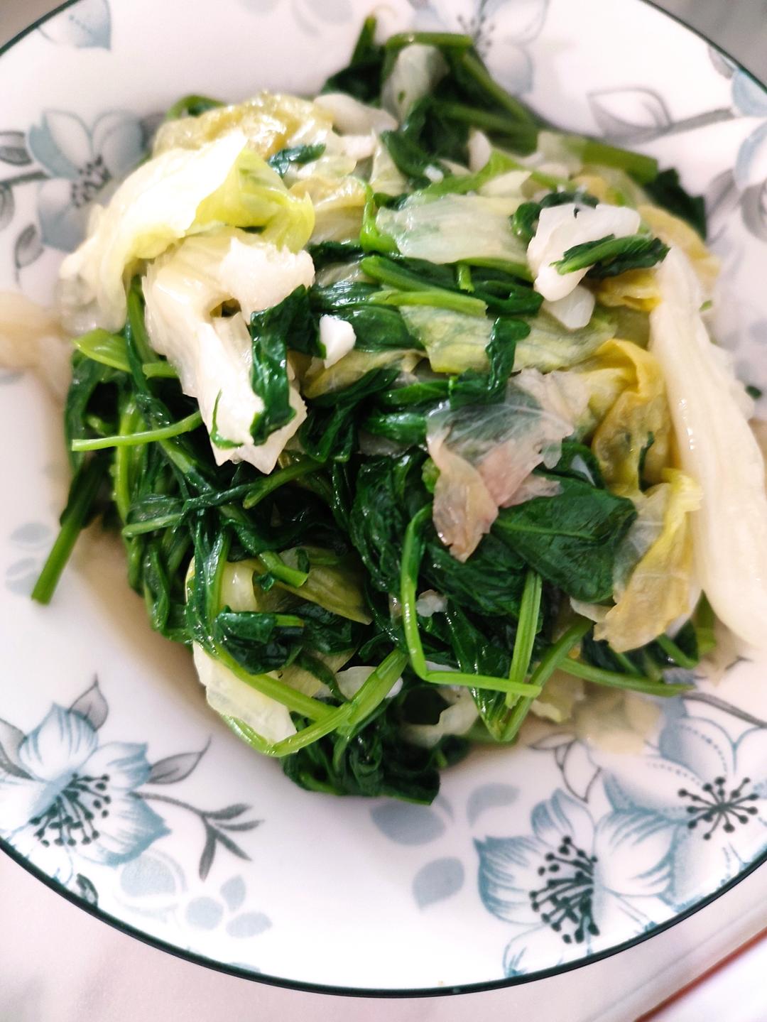 昨晚剩的鱼,炒空心菜,豇豆