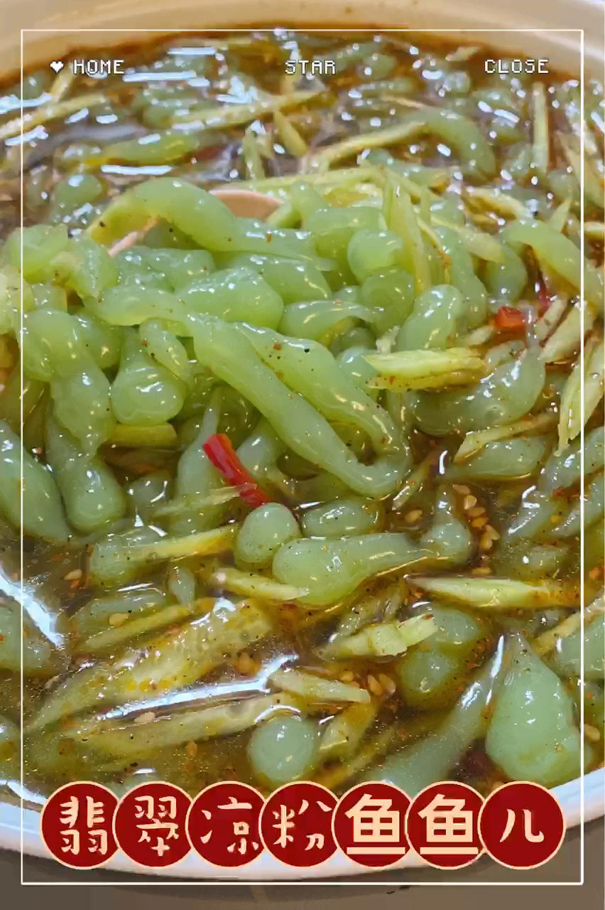 黄瓜皮汁做的凉粉鱼鱼,夏日的清凉味道。
