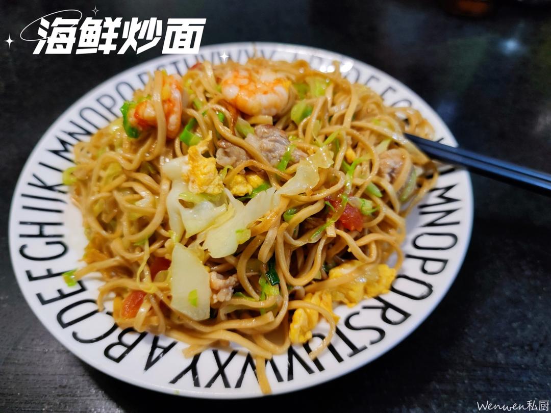 家人最喜欢吃的炒面,面蒸熟,加入肉,虾,蛋,蔬菜,各种材料炒熟,然后烩在一起炒,非常好...