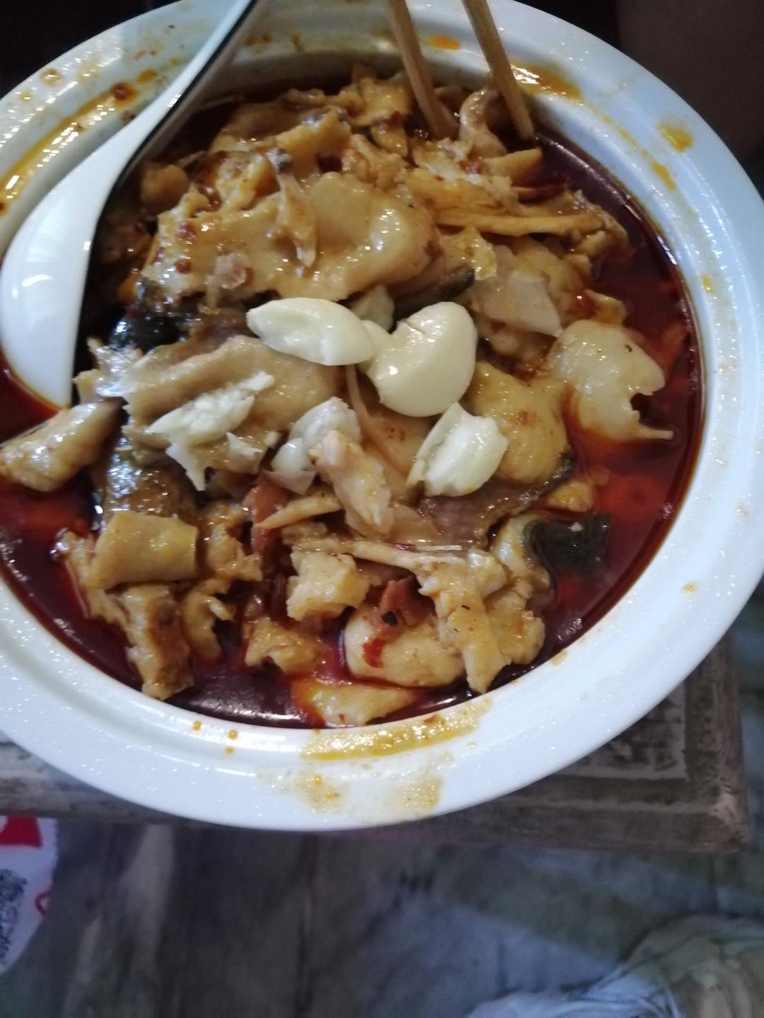 用黑鱼做的 还加了玉米猪肉肠 为了方便吃先把鱼切开了