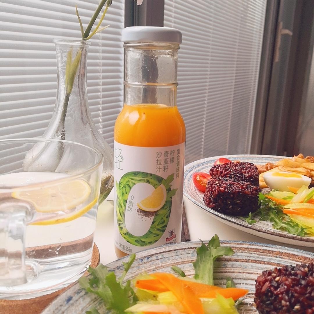 味好美的奇亚籽柠檬沙拉汁,味道很好,淋在饭团里,还有芹菜胡萝卜沙拉里一拌,清爽又消暑。用...