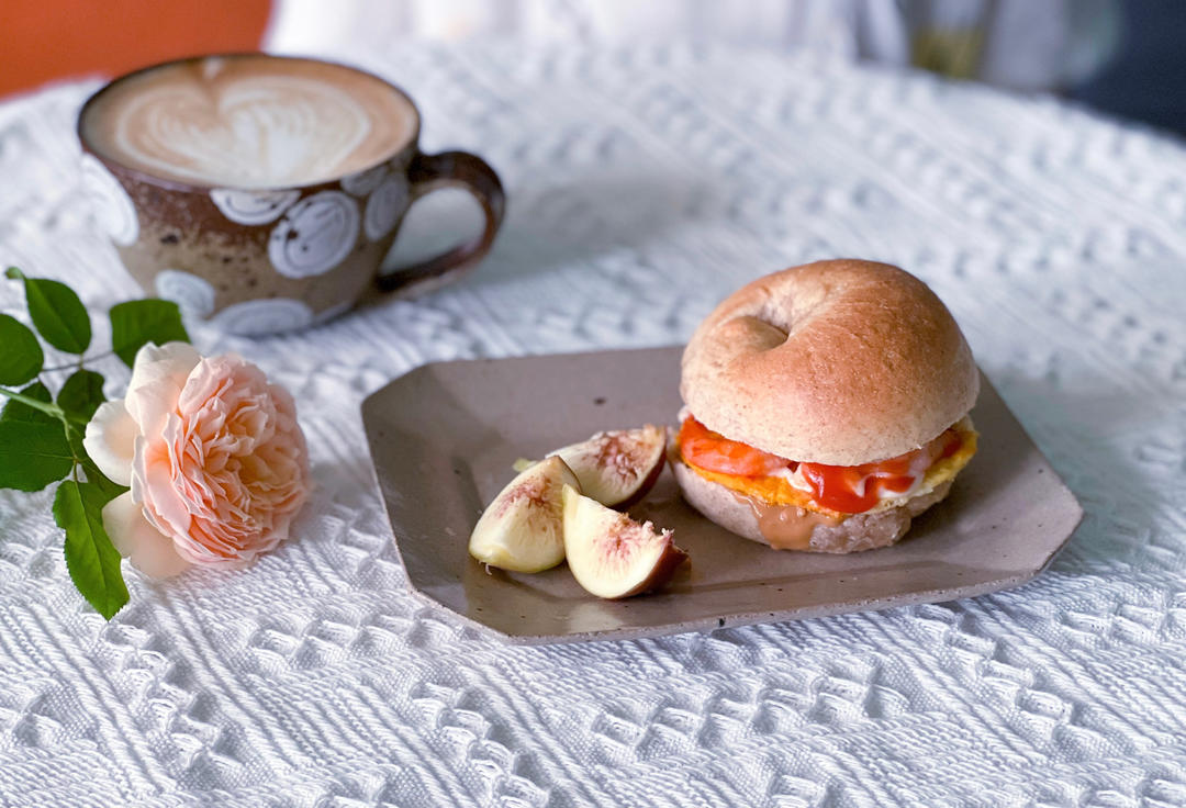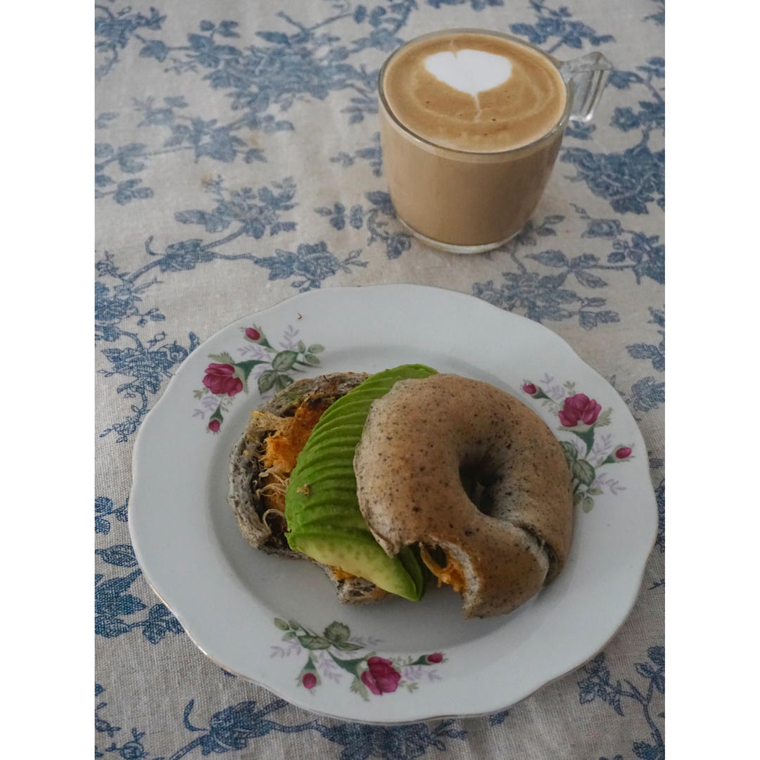 牛油果黑芝麻肉松贝果/拿铁