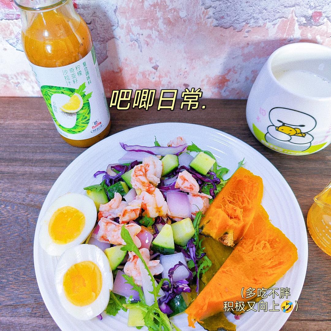 鲜虾鸡蛋沙拉,味好美柠檬奇亚籽沙拉汁。
