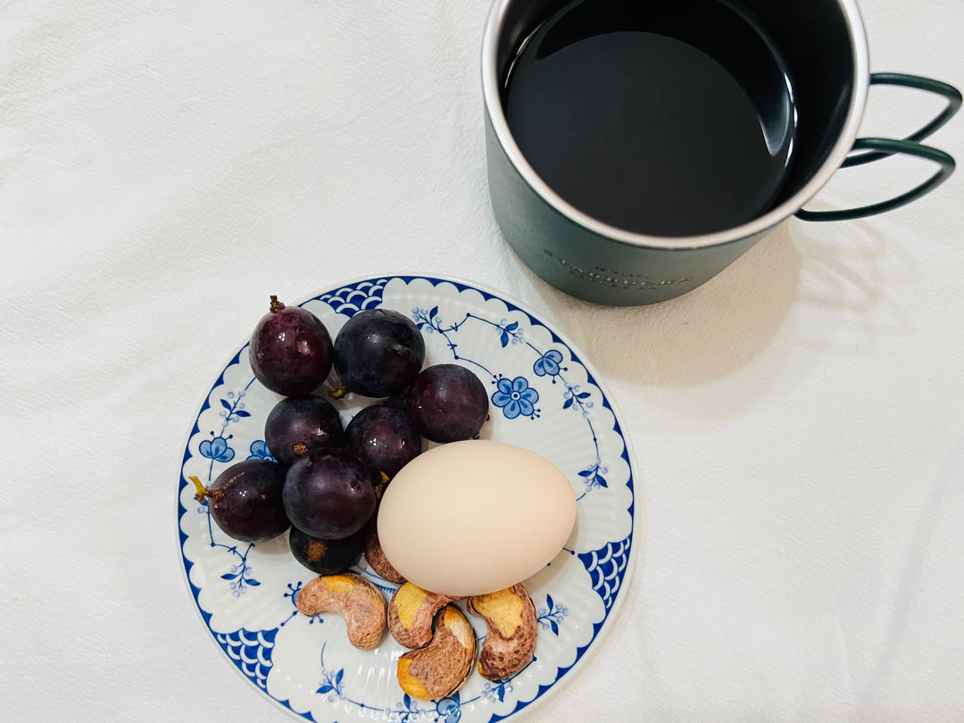 鸡蛋、坚果、水果、黑咖