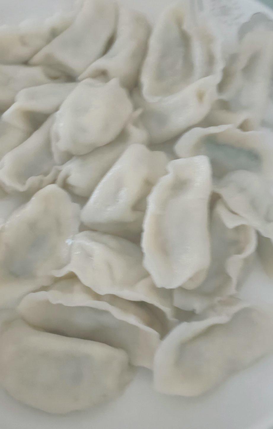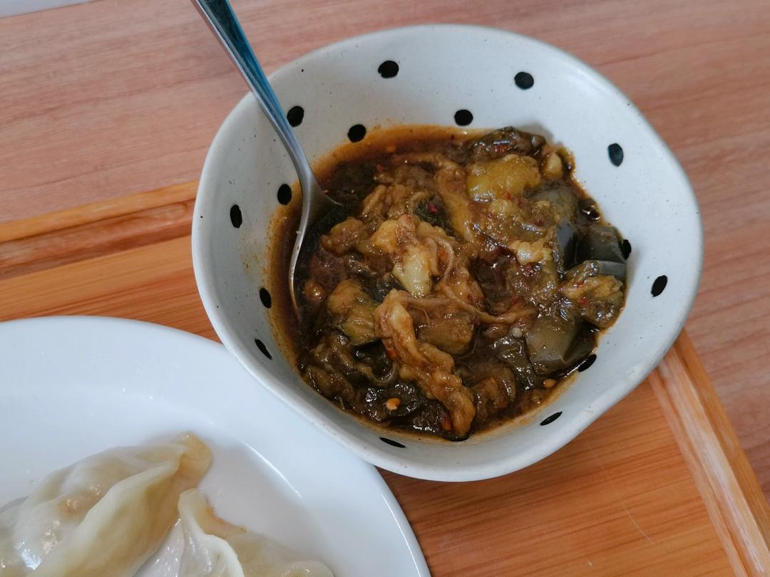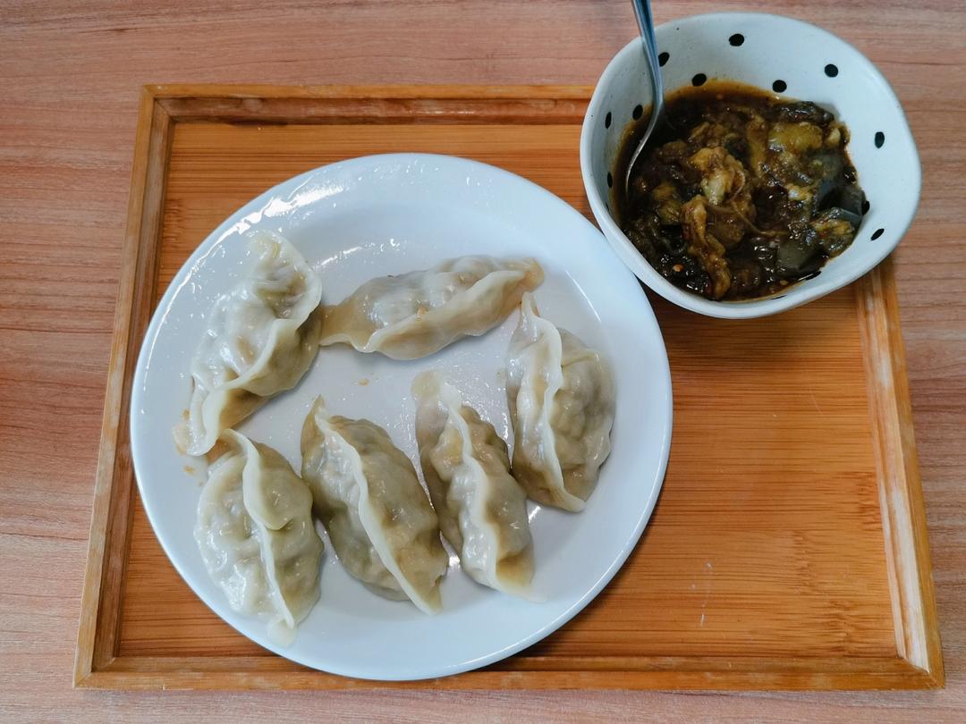 买了一个小茄子,一半凉拌,一半包饺子。