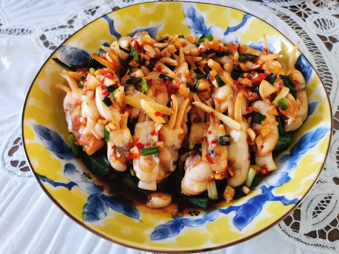 蛏子焯水、去壳,码盘