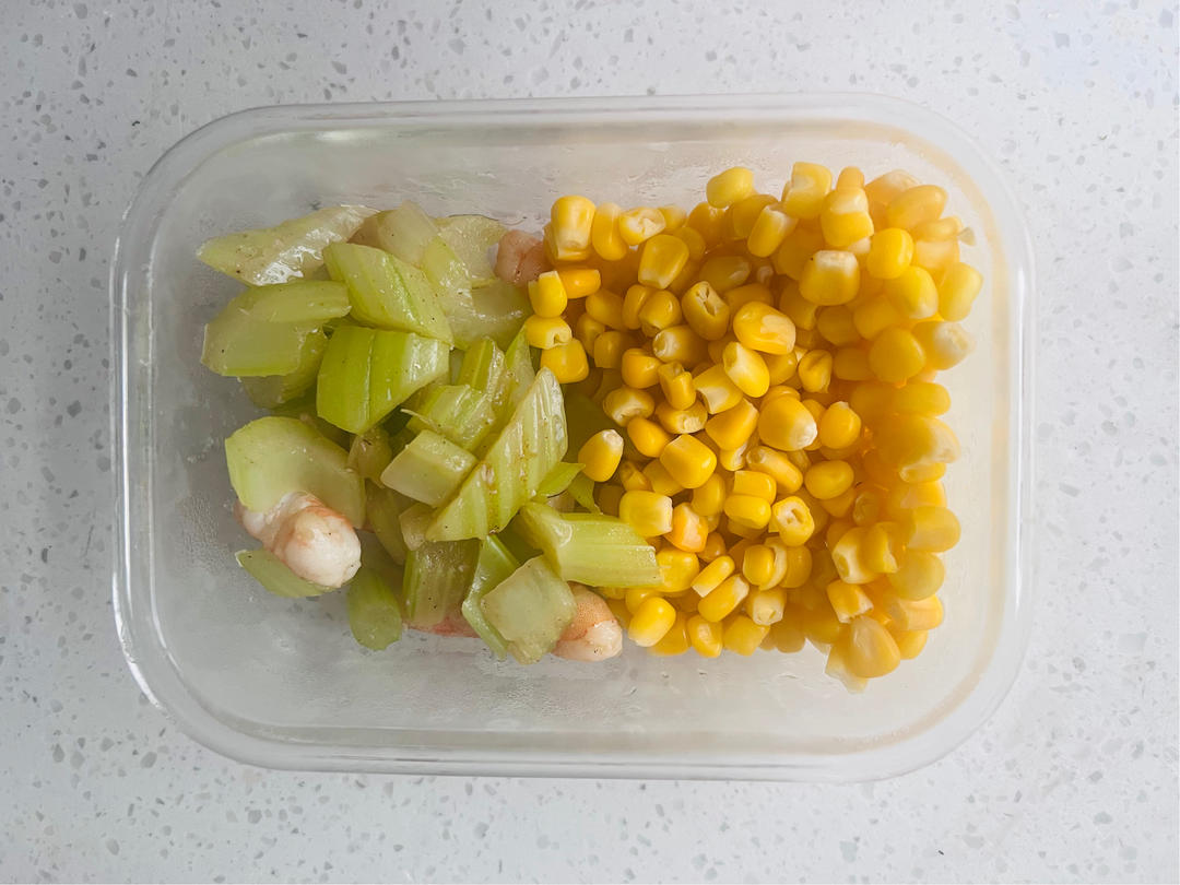 甜玉米粒+西芹炒虾仁