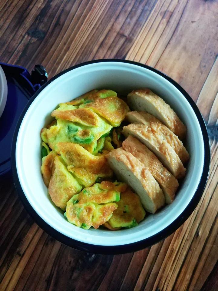 新周一午餐:辣椒煎蛋+炸肉卷+糙米饭