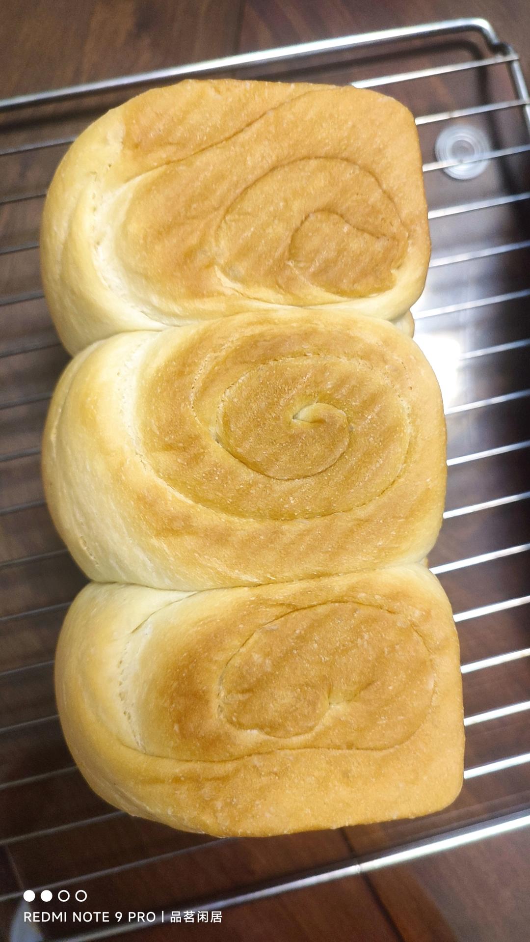 发酵七分满加盖,20分钟后开始烤,发酵不够充分,下次30分钟后再烤。有拉丝,口感也不错~