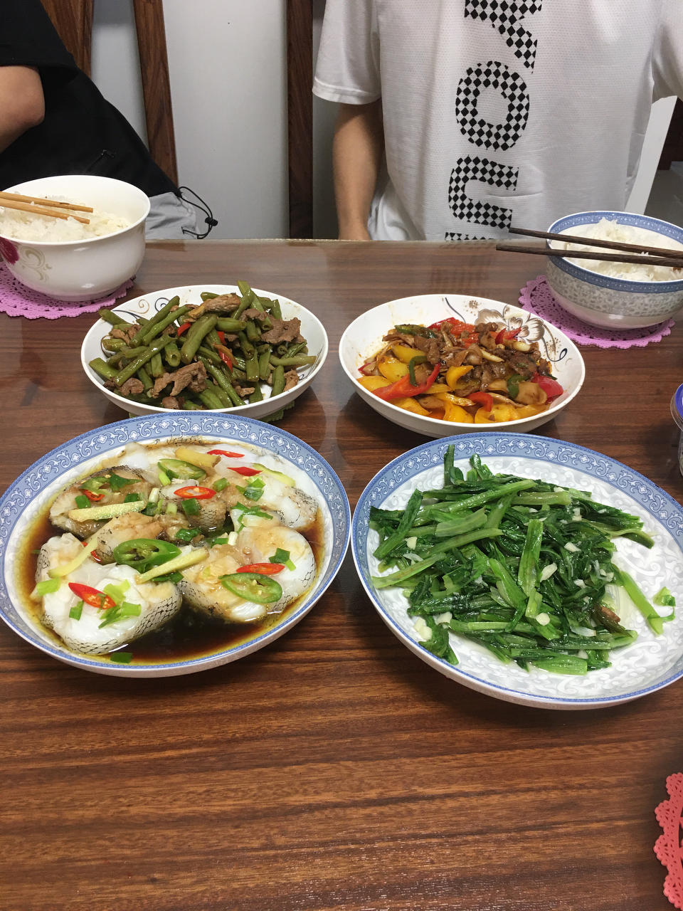 今天国庆节,孩子们都在家,喜欢人多欢乐的氛围,看看都做的啥:清蒸鳕鱼,蒜蓉油麦菜,豆角炒肉,辣椒杏鲍菇炒肉臊子。做饭2小...