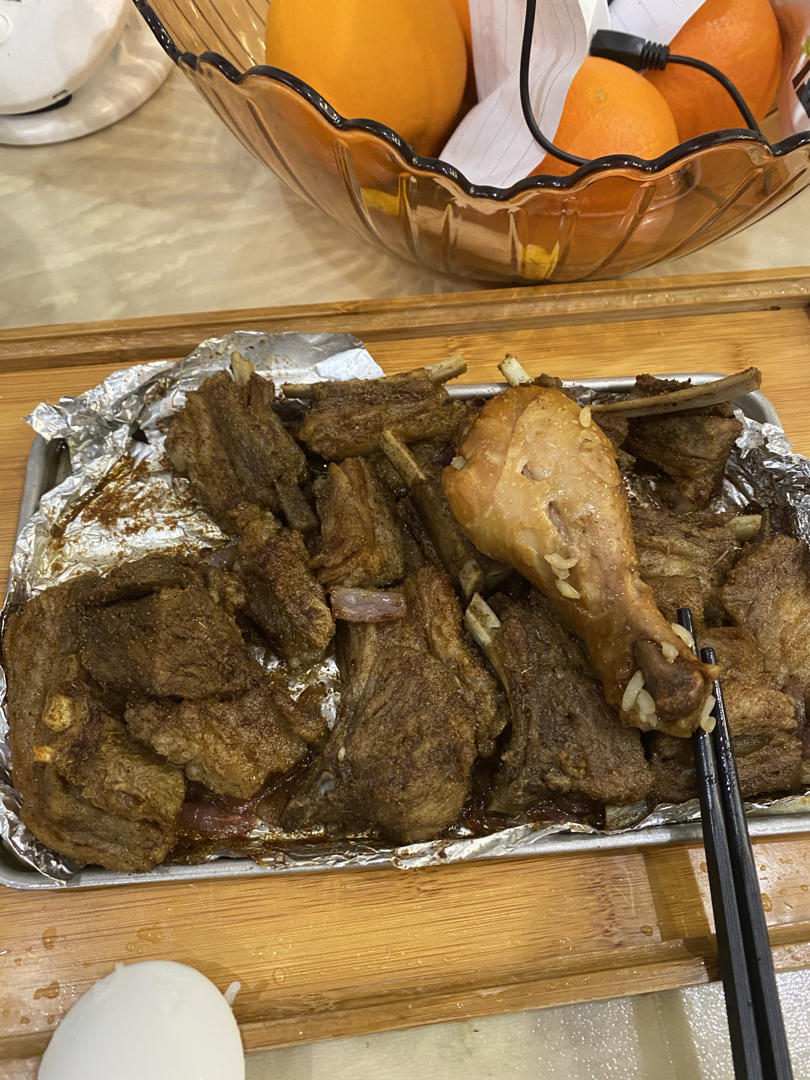 味道不错,烤的很成功,就是我的羊排肥了点😅