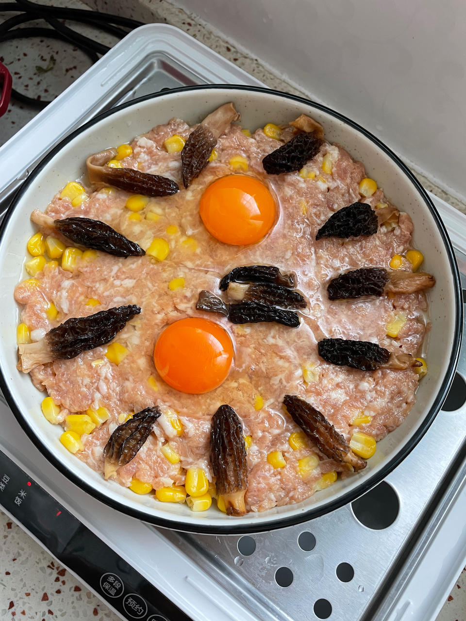 今天尝试蒸肉饼呀