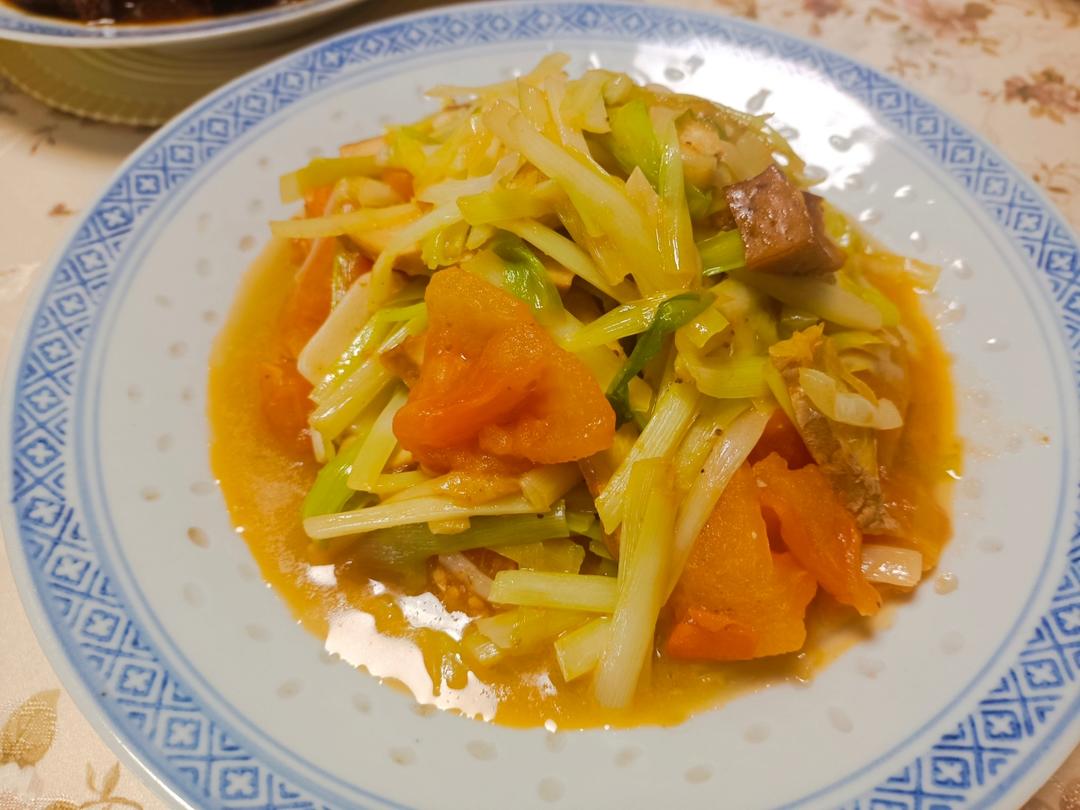 大葱烧豆腐,酸辣笋片,芹菜炒肉丝,毛血旺