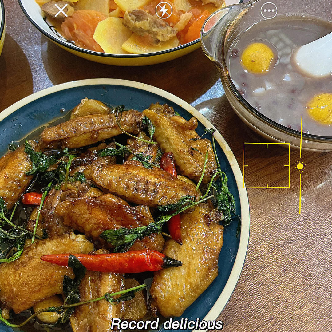 九层塔鸡翅和海南清凉补红豆沙榴莲汤圆。