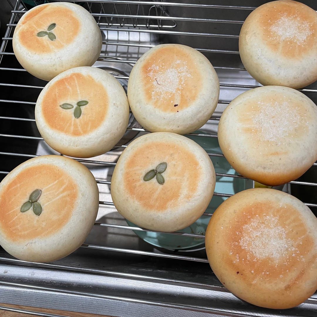 昨天的面包今天的馒头,同样的馅料,同样的皮馅重量(皮55,馅黄米45,紫米60)。