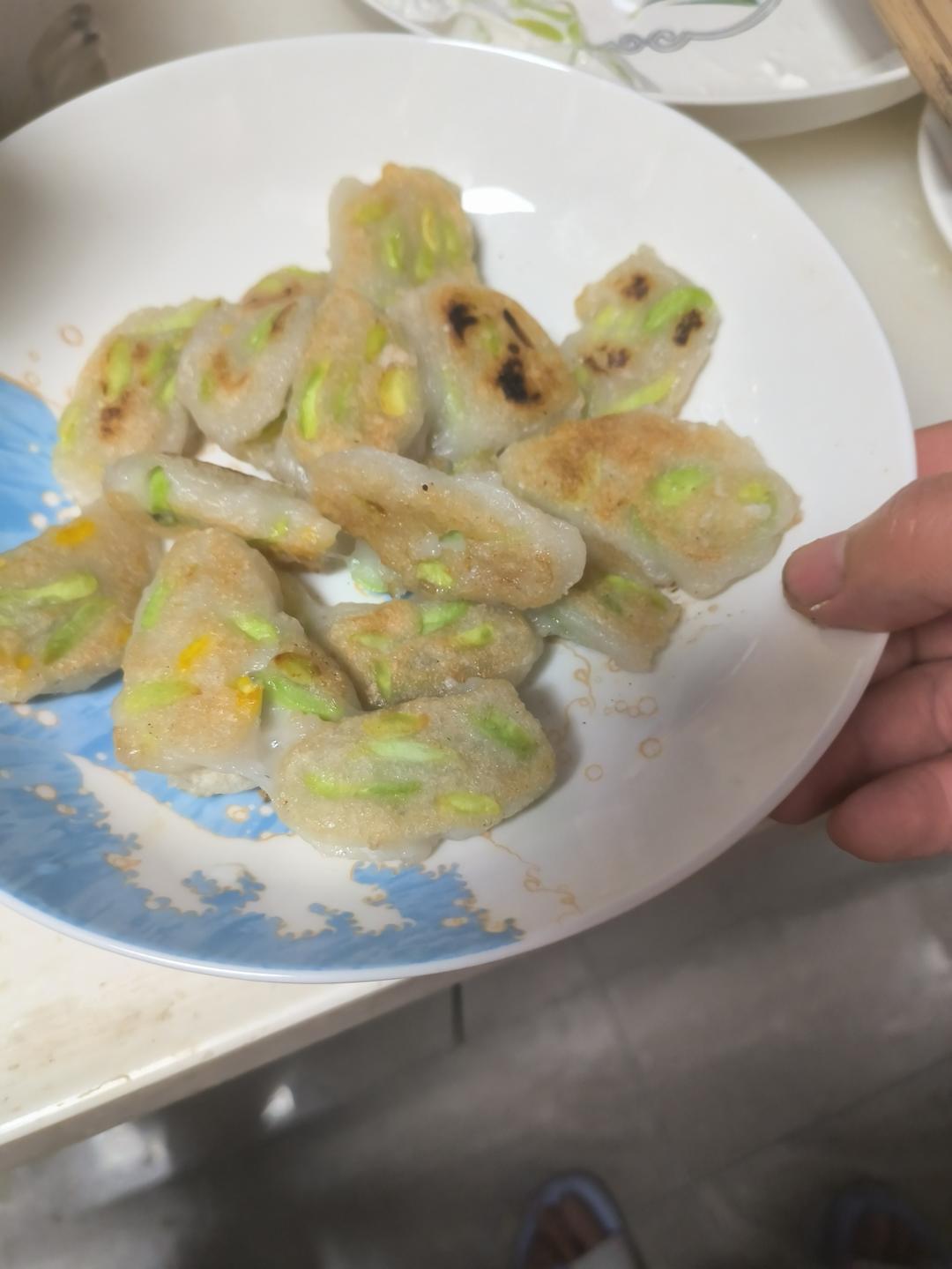 我觉得容器形状不重要,最后都是手捏的,可能是搅拌土豆泥时间太长导致有点黏了。
