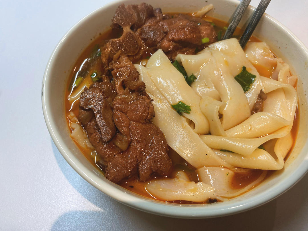 牛脊骨板面,两个“饿死鬼”不容我好好拍个照就端走大快朵颐了