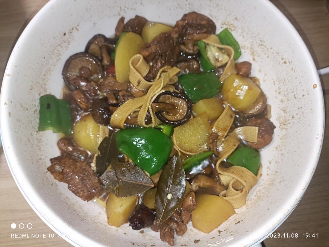 简版黄焖鸡,两个鸡全腿,只放了一个土豆,没加鸡精胡椒粉五香粉,加了两个八角,两个干红椒,...