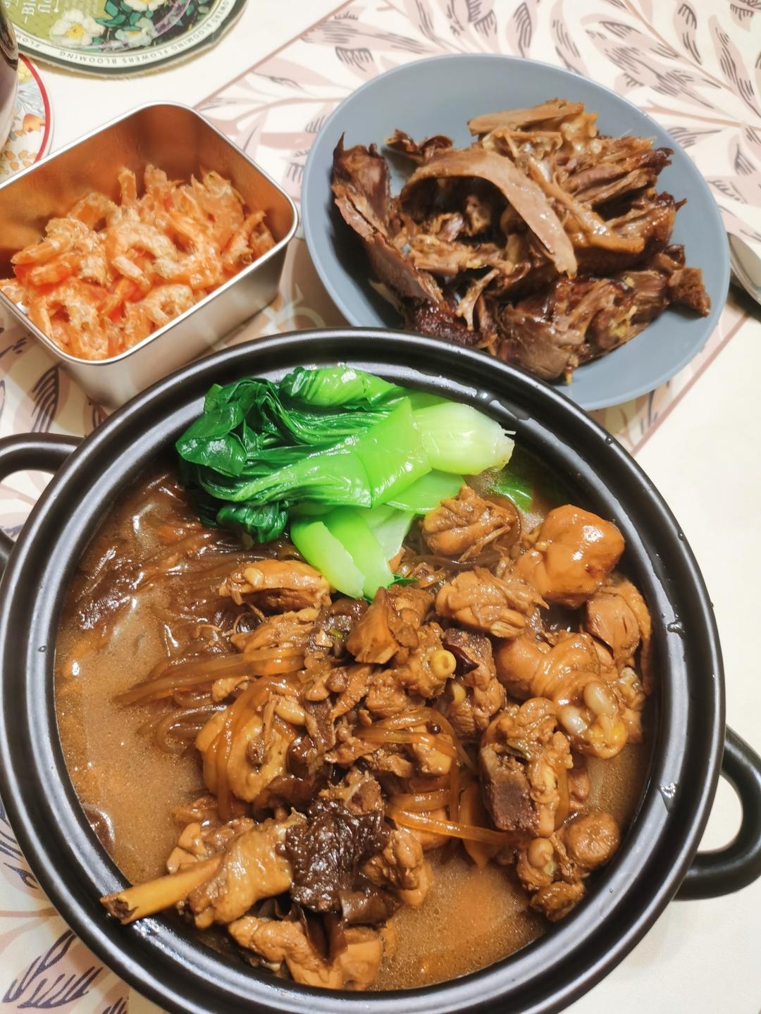 炖鸡腿粉条,虾干