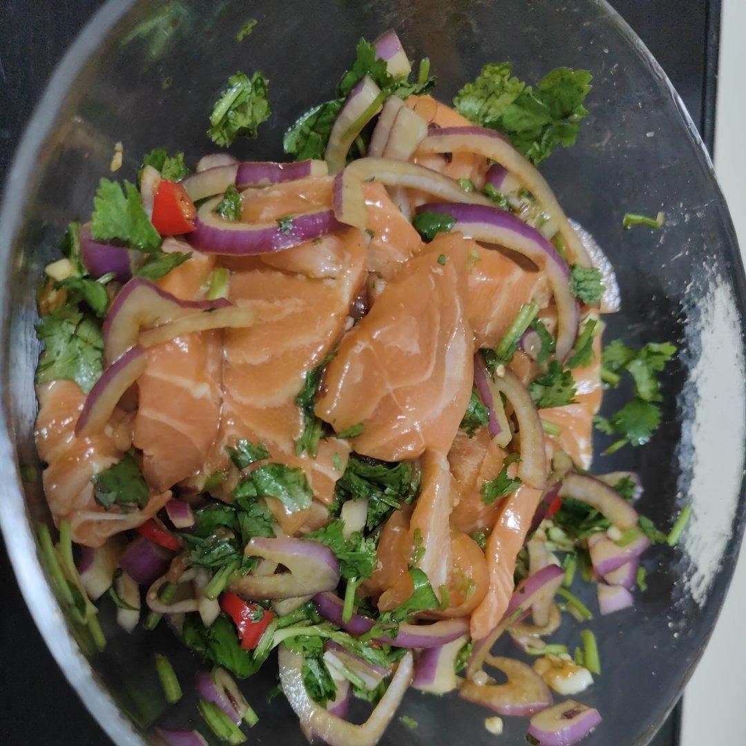 第一次做腊肠鱼(竹锦),盐下多了,海鱼可能本身刘比较咸