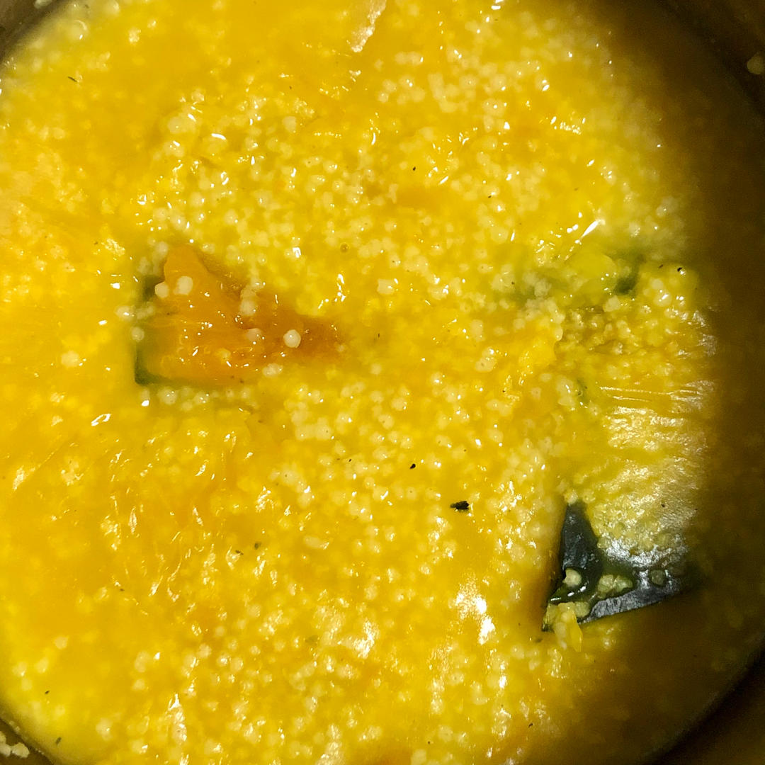 南瓜小米粥;凉拌菠菜杏仁火腿;烤馒头片