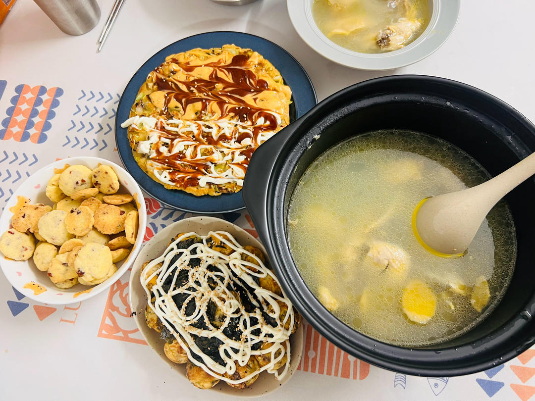 鸡汤,章鱼小丸子,大阪烧