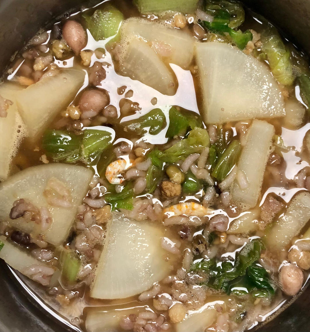 白萝卜磷虾烩中午剩菜剩饭;肉沫番茄榨菜热汤面