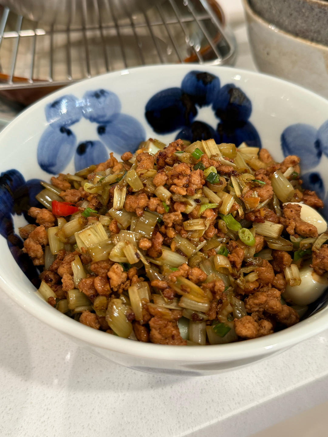 醋泡空心菜梗炒肉糜,挺香的,但是not my type