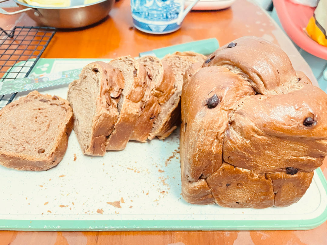 做了双倍,用了四个小吐司盒,一半放巧克力豆,一半放了红枣碎。柔软拉丝,巧克力的香味浓郁,好吃到爆#下午茶•2025年8月...
