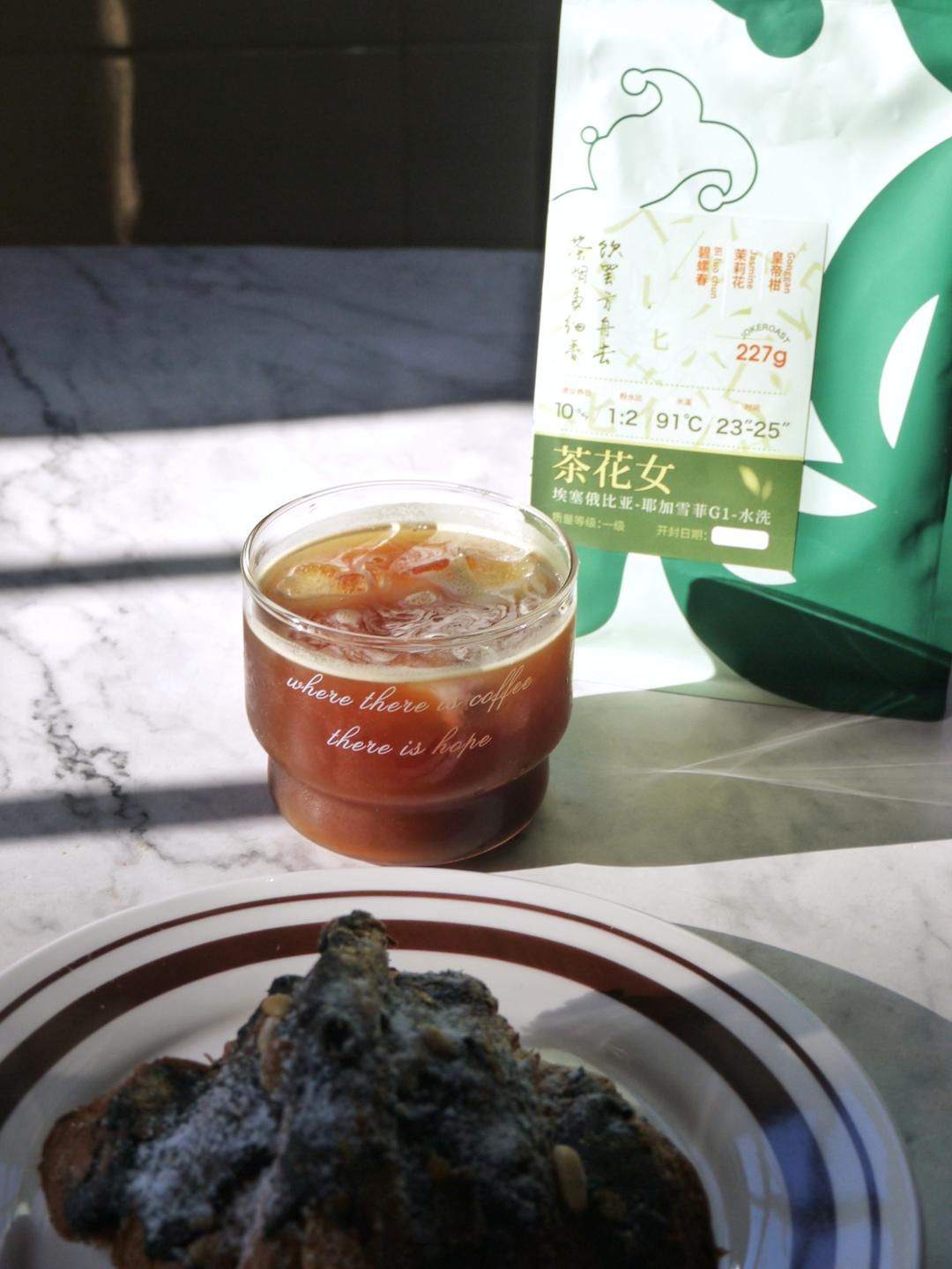 早安~~冰美式+烤黑芝麻可颂~~