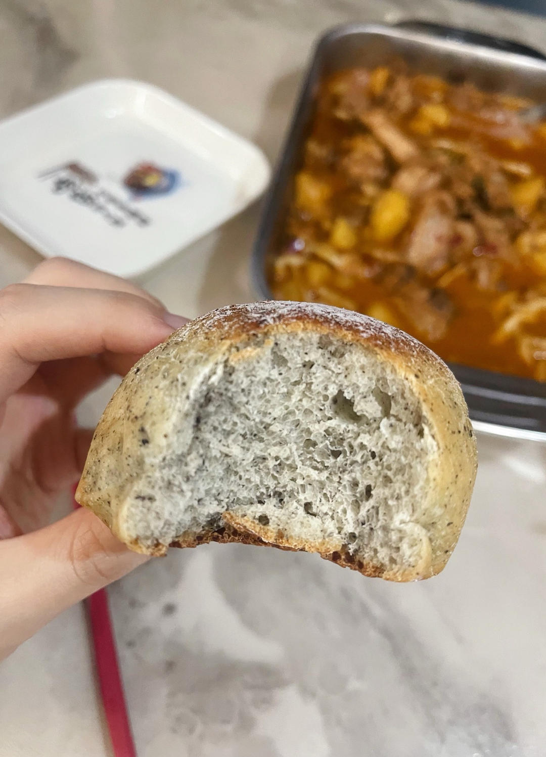 非常香,用的硬红高筋粉,外壳比较韧,第一口咬着会有点累,但是里面很软。