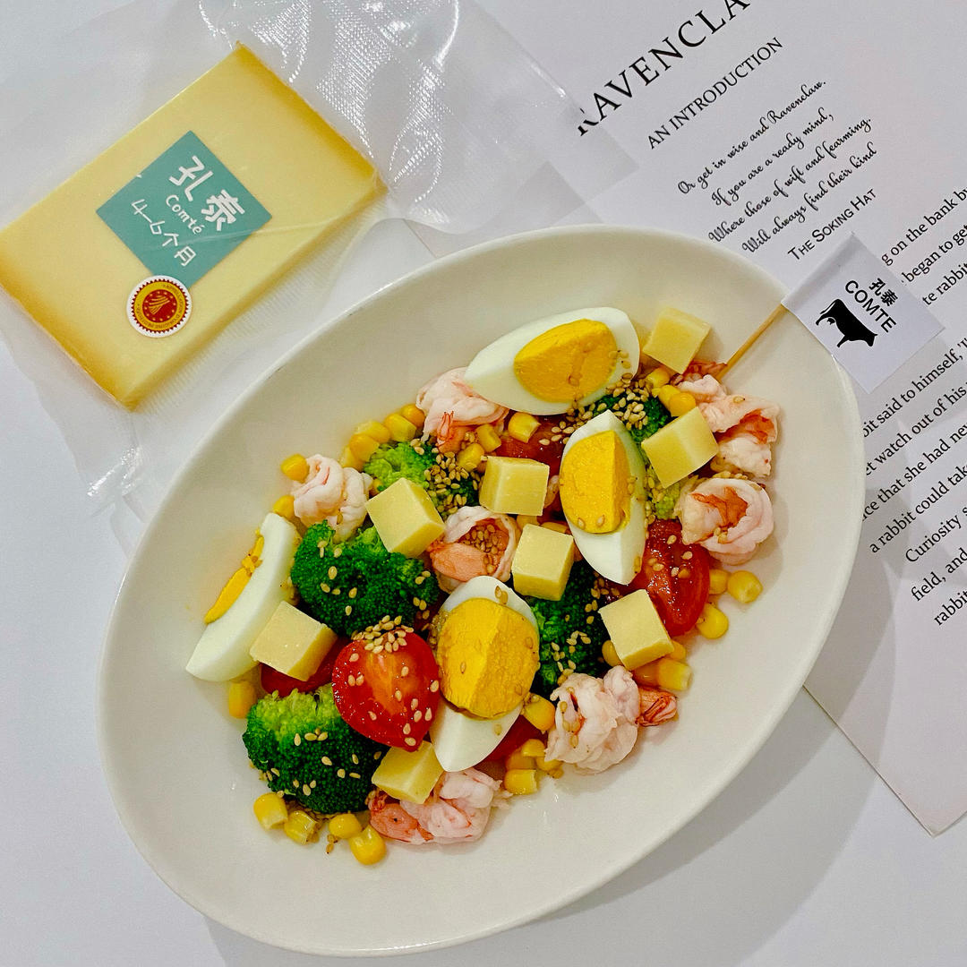 时蔬奶酪虾仁🍤沙拉🥗,色彩斑斓,营养丰富,健康美味😋,加入了孔泰奶酪,咸香软糯,奶香浓郁,增加口感和营养,孔泰奶酪自带浓...