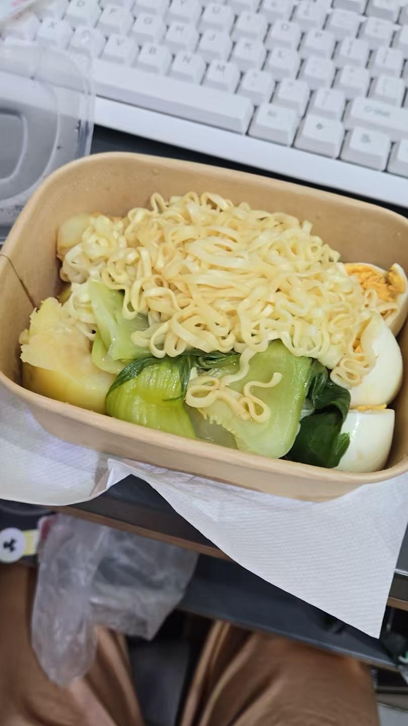 燃面也是楼下买的,边吃边倍速看月初的恋综,总算...