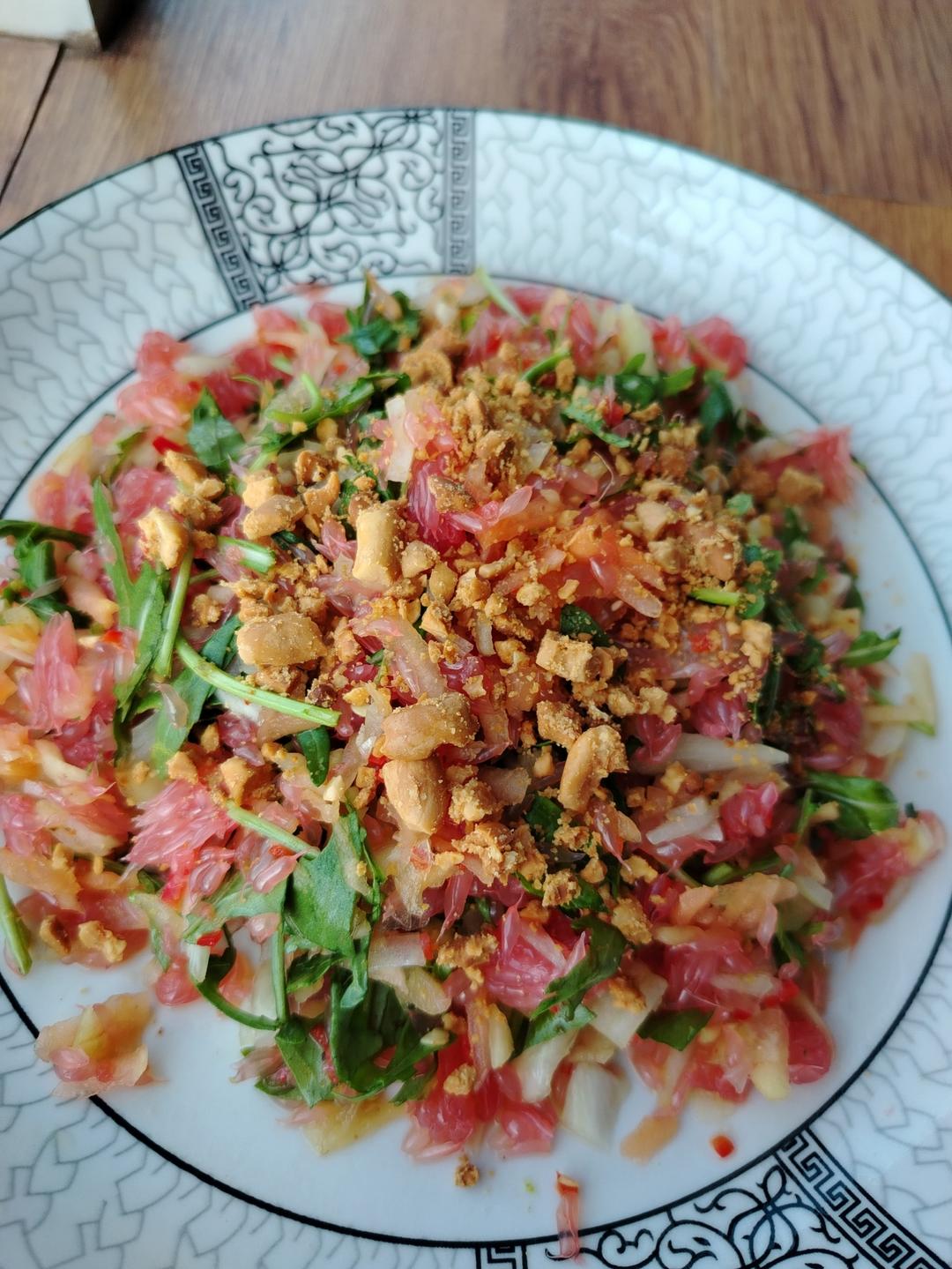 买了3公斤西柚🤣,太酸倒牙,只好都用来做咸味沙拉,很不错。房东这里也没有搅打机器,做不了果汁。#午餐•2025年10月1...