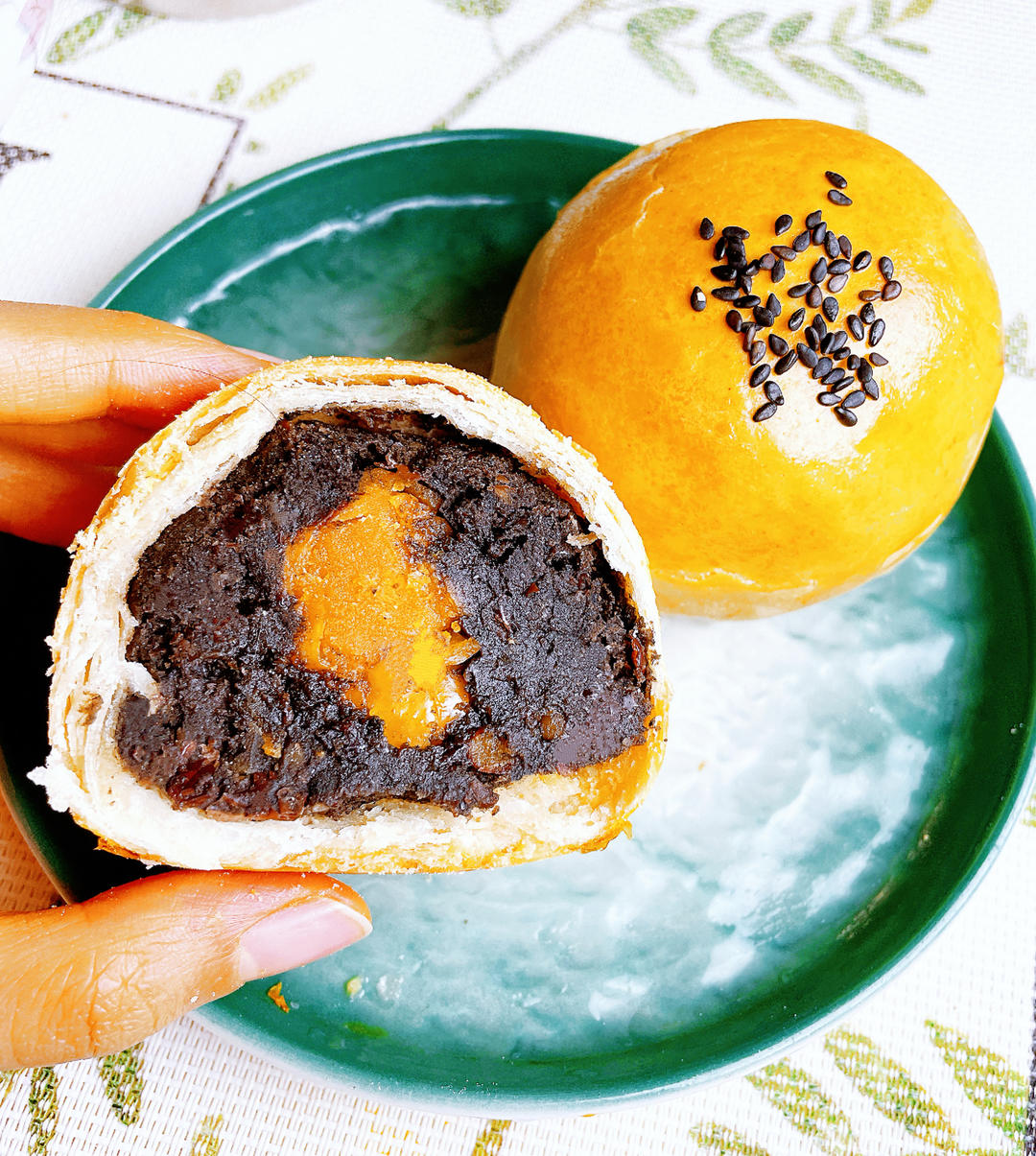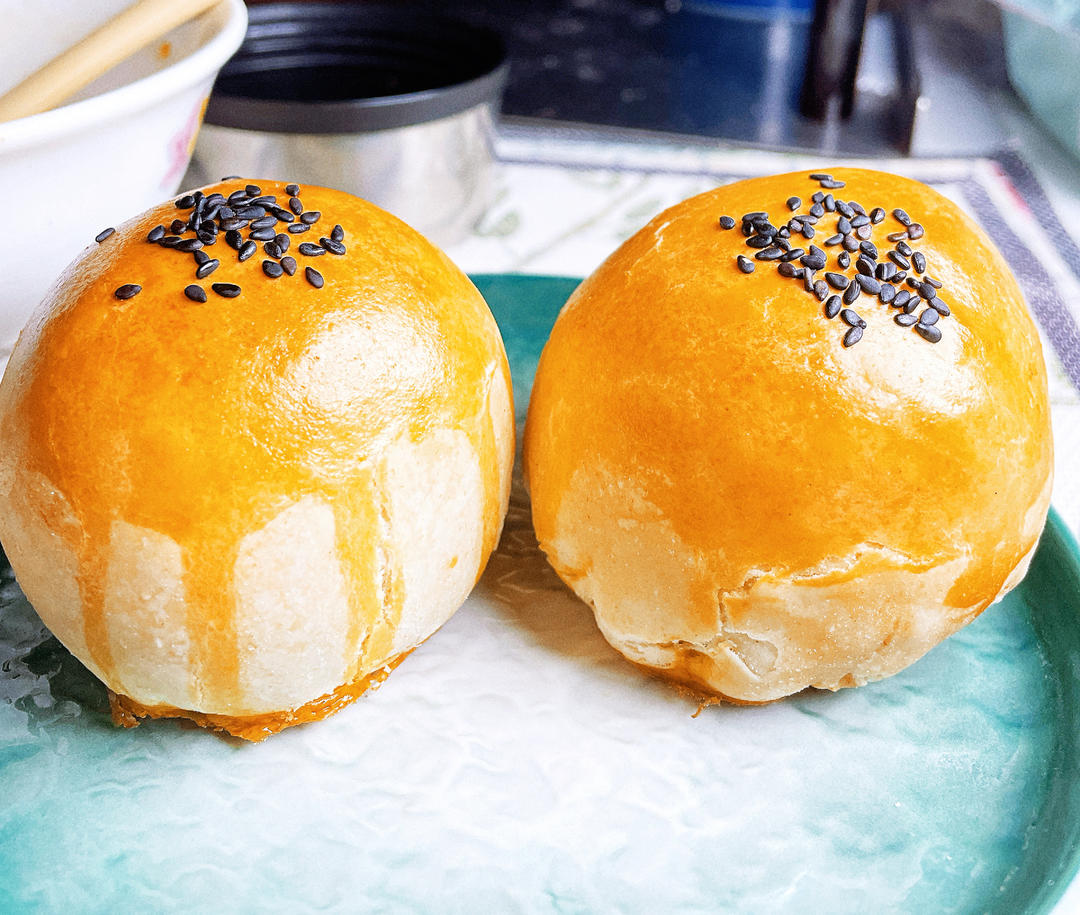 黑芝麻馅➕咸蛋黄的蛋黄酥,烤了快35分钟,还好顶部没焦hhhhh