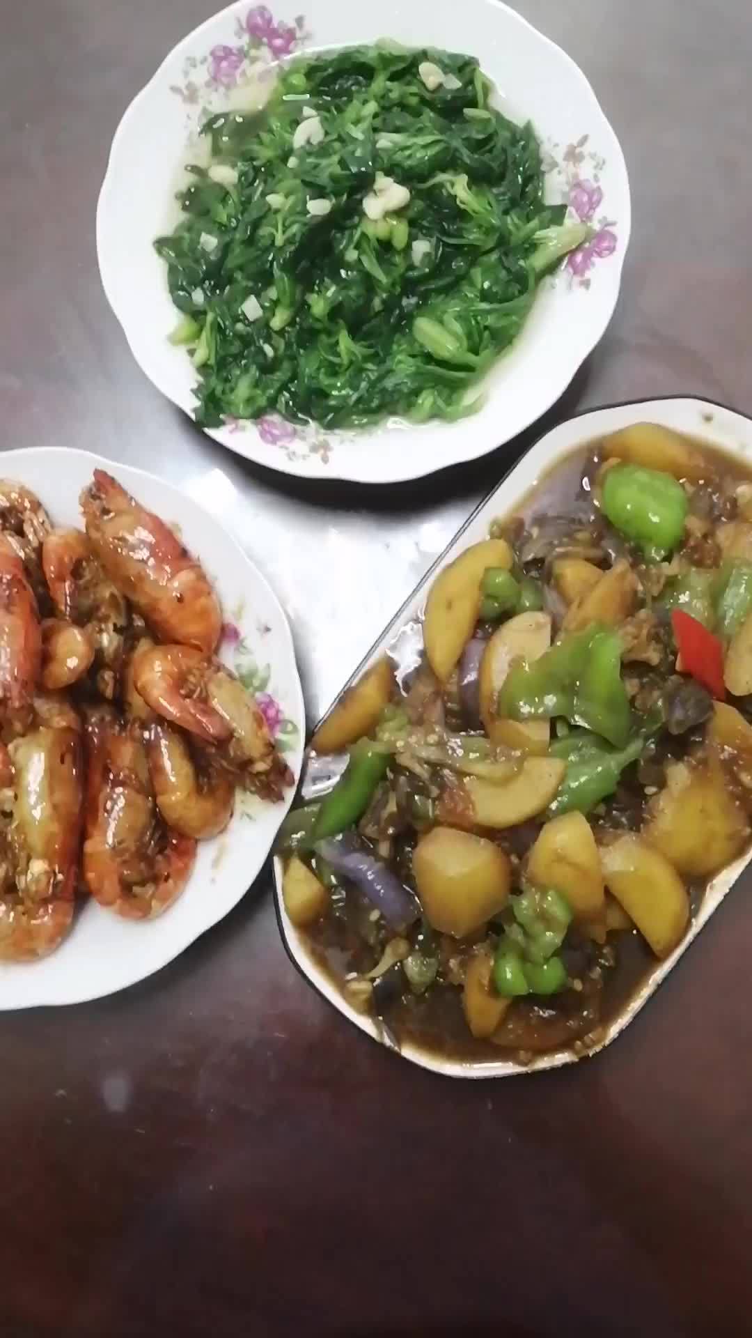 辣椒茄子炖土豆 蒜香蓬蒿菜 油爆罗氏虾