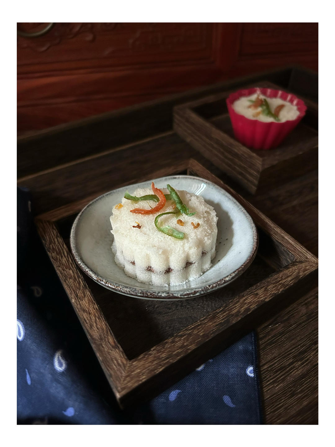 用75g月饼模具压的重阳糕,可以少洗一堆的模具。第一图做的顶上图案都粘掉了,第二图做的每压一个倒点干粉倒腾一下,图案完整...