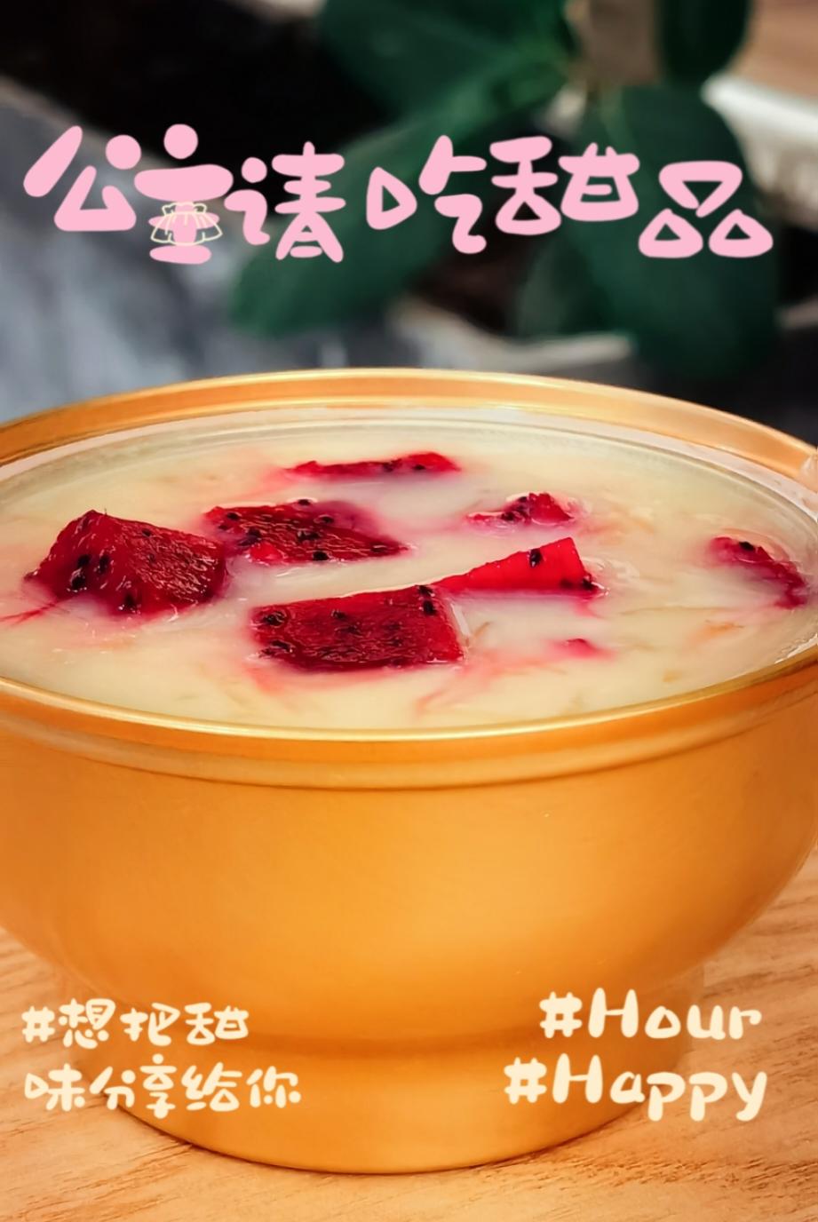 昨晚聚餐感觉吃了不少,今天轻断食。午餐吃的这碗燕窝花胶燕麦粥,杨枝甘露味...