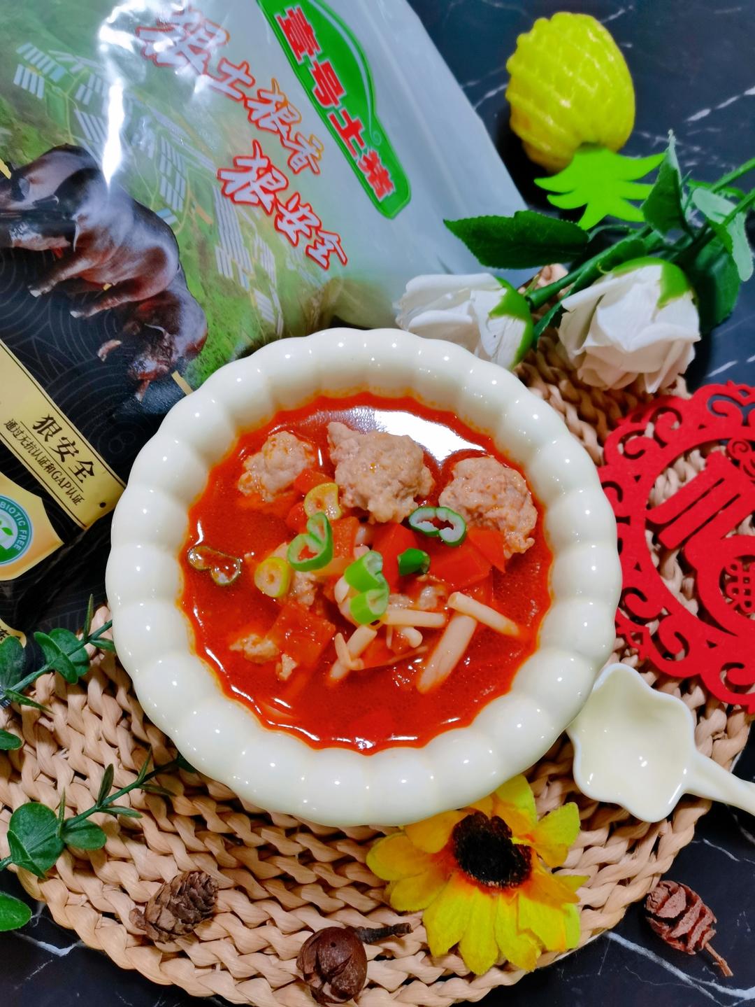 壹号土猪无抗黑猪🐷🐷🐷「番茄浓汤肉丸子」。。。肉质细腻、醇香至极🤤🤤🤤