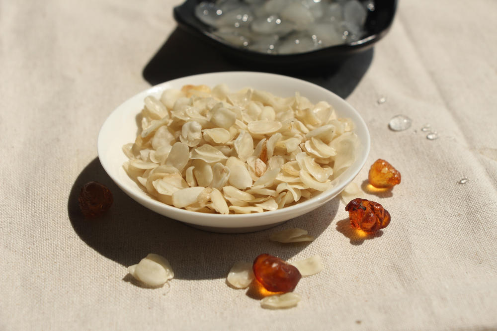 要煮出一碗又稠又糯的完美银耳羹,只有银耳是不够的,还得有这两样:桃胶、皂角米。桃胶是桃树自然分泌的树脂,也有人管叫它做“桃花泪”;皂角米是皂荚的果实,被称为“雪莲子”。