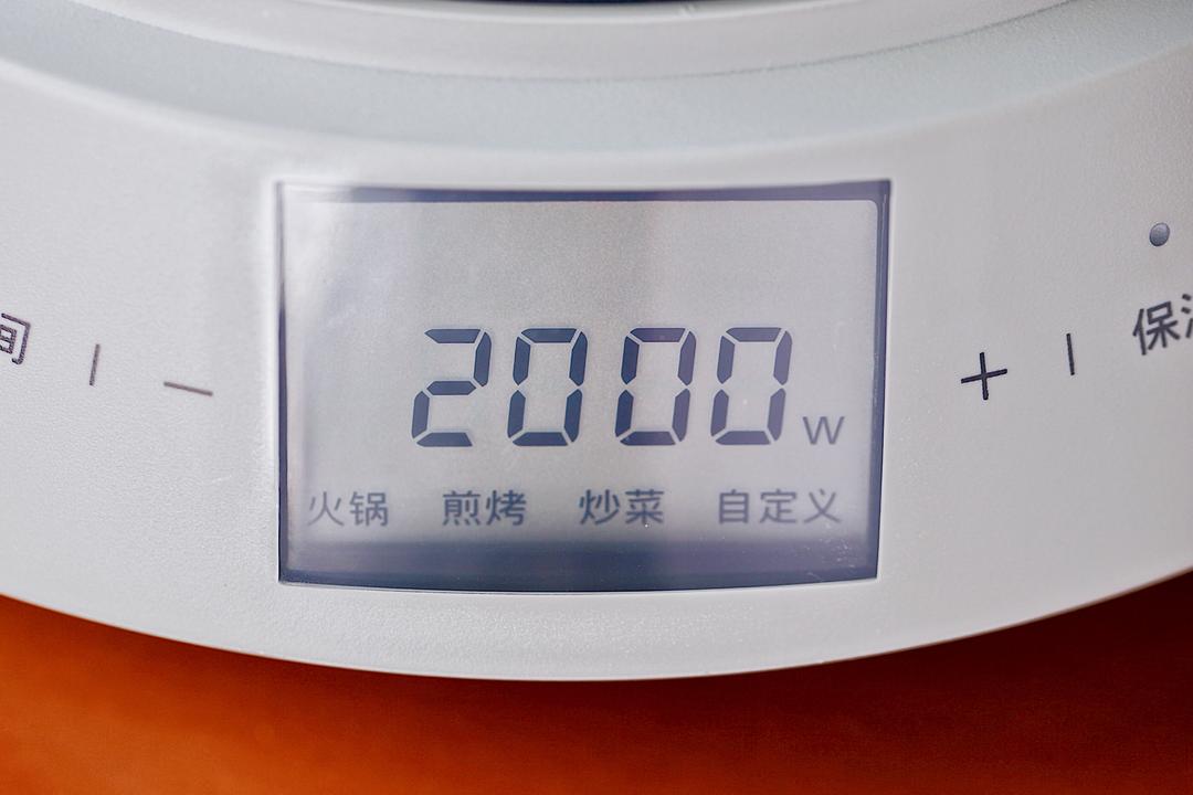 它体积小但是火力大!10档控温,触摸式操作,最高可达2000瓦。「火锅」「煎烤」「炒菜」「自定义」四大模式,简单明了。
