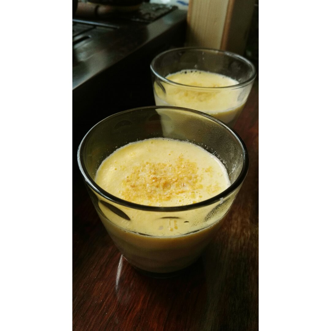 #早餐•2019年7月5日##早餐打卡##破壁机#玉米一根,牛奶300ml,水350ml。撒上烤过的小麦胚芽增加香气和口感,还不错!