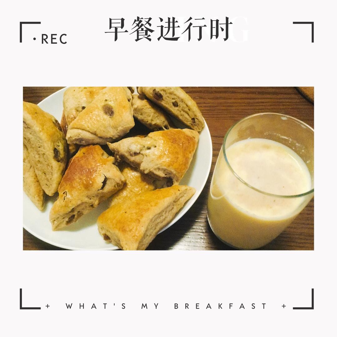 黑麦葡萄干&核桃司康、胚芽玉米汁 #早餐•2017年6月20日#
