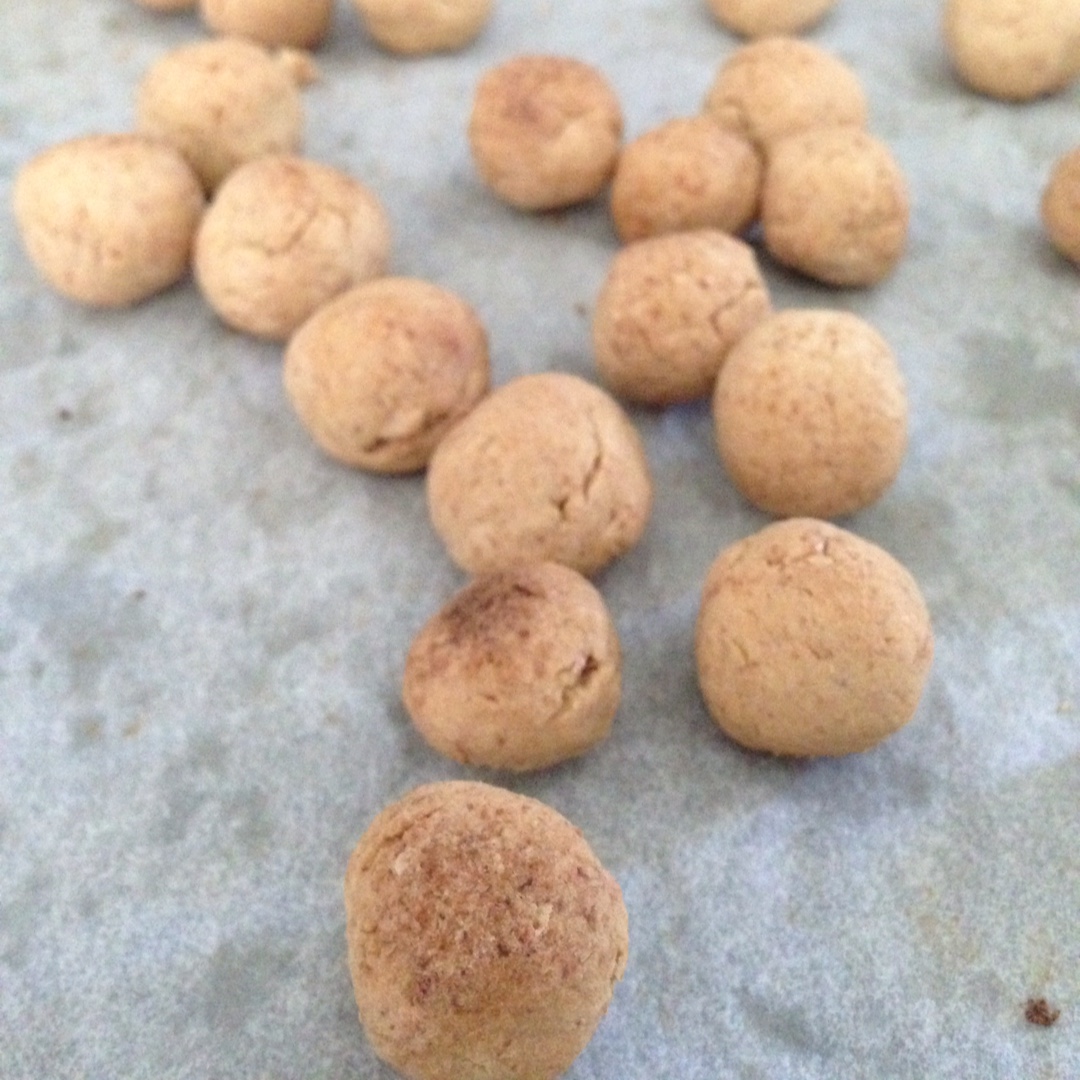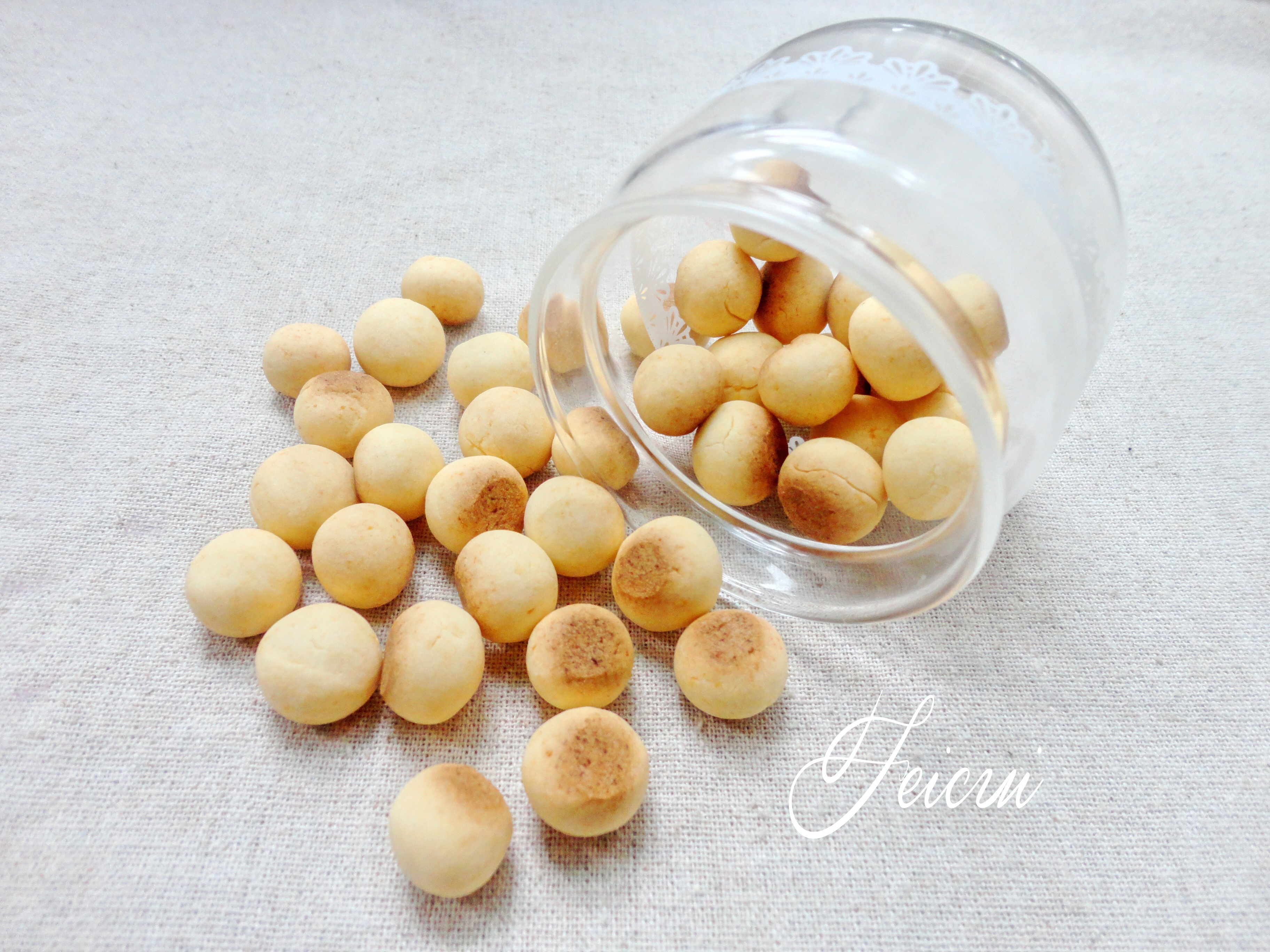 可以两颗一起搓,可是口感有点又硬又脆,没有放马铃薯淀粉的口感松,不过挺可爱不是吗